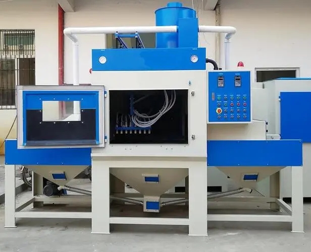 钣金喷砂机是一种常用的表面处理设备,它能砂化钣金,使其表面更加光滑耐用。钣金喷砂机由喷砂枪、喷砂室、回收系统等组成。其工作原理是利用高速喷砂机头喷砂,冲刷钣金表面,达到去除氧化层、划痕、油渍等杂质的效果。钣金喷砂机的优点是可以处理不同形状的钣金,无论是平面、立体还是异形,都能得到有效的处理效果。此外,喷砂机喷砂速度快,处理效率高,可大大缩短处理时间,提高工作效率。同时,钣金喷砂机还可以控制喷砂量和喷砂速率,进而进行更准确的处理,保证表面处理的质量。钣金喷砂机广泛应用于汽车制造、机械制造、电子制造、航空航天等领域。在汽车制造业中,钣金喷砂机可以处理车身钣金,使其表面更加光滑整洁,提高车身的质量和外观。在机械制造业中,钣金喷砂机可以处理机械零件,避免零件表面的氧化和腐蚀,提高机器的使用寿命。在电子制造业中,钣金喷砂机可以处理电子零件,提高零件的精度和质量。在航空航天工业中,钣金喷砂机可以处理钣金,使其表面更加光滑耐用,提高飞机的使用寿命和安全性。简而言之,钣金喷砂机是一种至关重要的表面处理设备,可以高效、准确地砂化钣金,提高钣金的表面质量和使用寿命。随着各行各业对产品质量和生产效率的要求越来越高,钣金喷砂机的应用也将越来越广泛。
